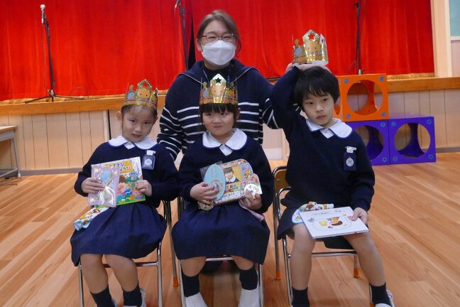 11月のお誕生会がありました。おおきくなったら?の質問に嬉しそうにこたえていました。みんな夢がかなうといいですね。その後は、おたのしみ会。楽しいパネルシアタをみました。