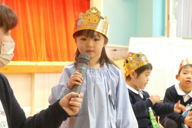 今日は、1月のお誕生会でした。みんなで、お祝いしました。おめでとう!