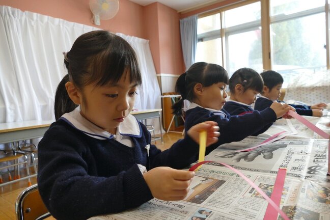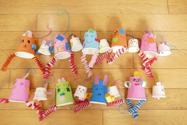 今日の絵画教室は年中組でした。今回は「ぼよんぼよんうさぎ」を作りました。足を順番に折りたたむのが難しかったかな?大人のうさぎと子供のうさぎが出来ました。