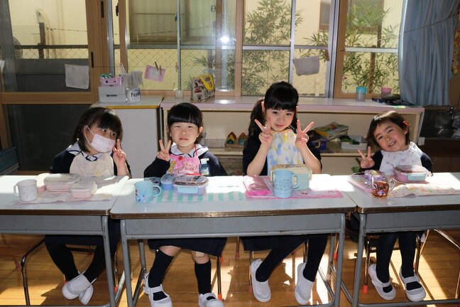 卒園を控えた年長さんとのお別れ会をしました。年長さんの手話やお歌を聞いたり、一緒にダンスやゲームを楽しみました。小さい組さん達からのプレゼントをもらい、その後の昼食は年長さんと一緒にお弁当を食べました。