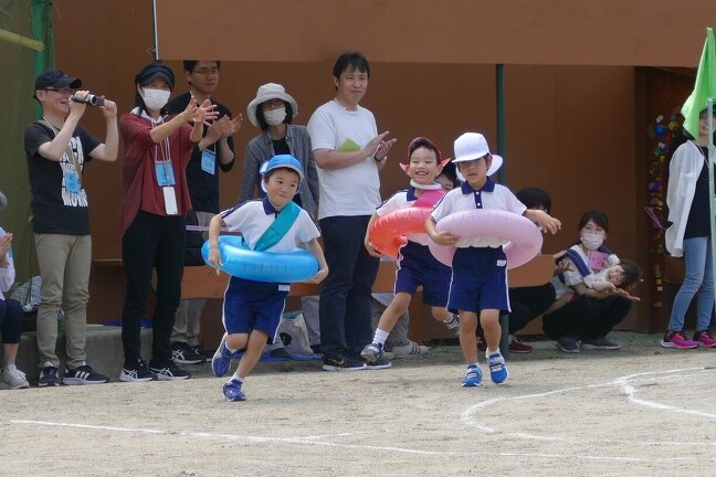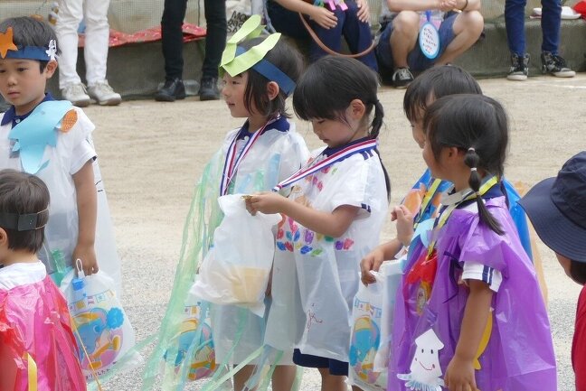 障害物走は「海の中の探検だー!」や玉入れは「大漁 大漁!」、「うきわDeリレー」など