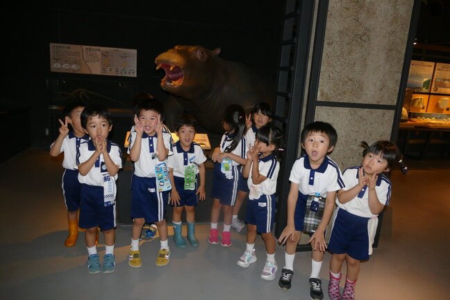 今日は年長組さんが科学博物館に行きました。恐竜やいろいろな石、科学の実験、強風体験室、いろいろな生き物、雲ができるまでの体験、昔の住まい、いろいろな骨など体いっぱい感じて、触れて、最後にはプラネタリュウムを見ました。まだまだ、見たいものやりたいことがありましたが、次回はお父さん