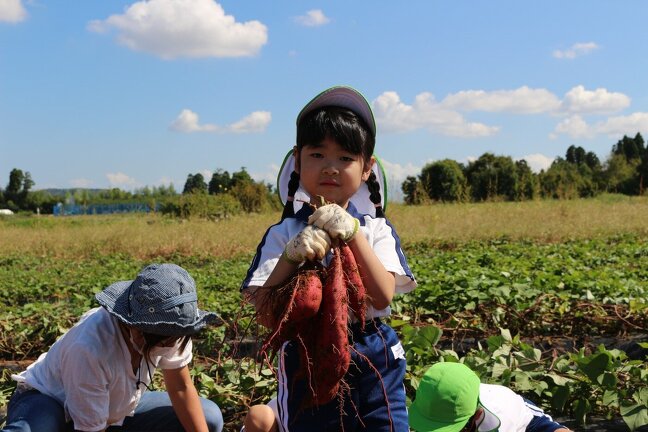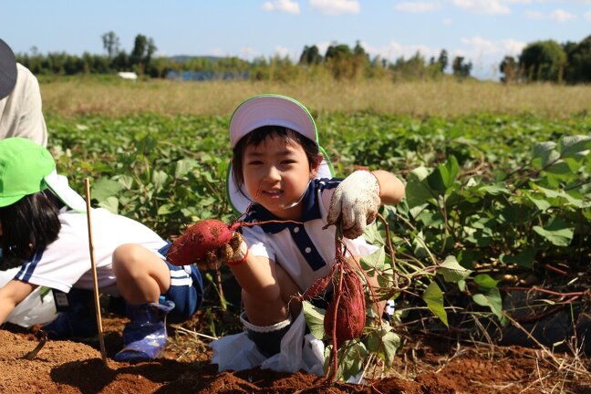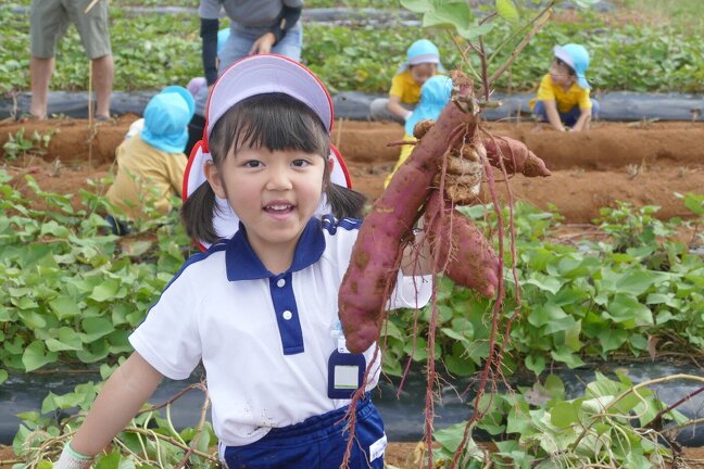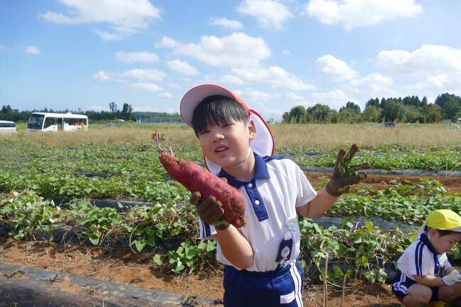 昨日、今日と2日間お芋掘りに行きました。今年は天候も良く、青空の下で沢山お芋を掘りました。