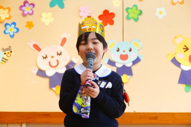 今日は4月のお誕生会でした。みんなでで歌をいたったり、プレゼントをもらったり。何歳になったかな?お誕生日、おめでとう!