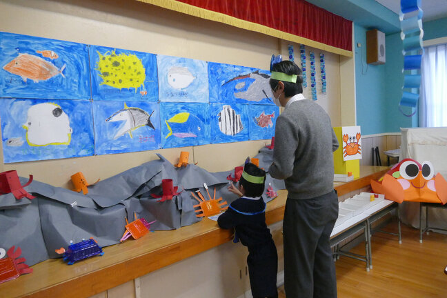 今年度、最後の参観がありました。作品展と海をテーマにした親子で参加のポイントゲームをしました。親子で、楽しい時間を過ごしました。